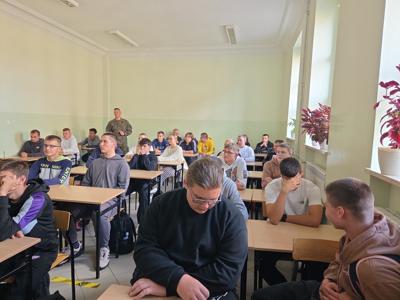 Zajęcia informacyjno - doradcze o rekrutacji do wojska w Zespole Szkół nr 1 w Białej Piskiej