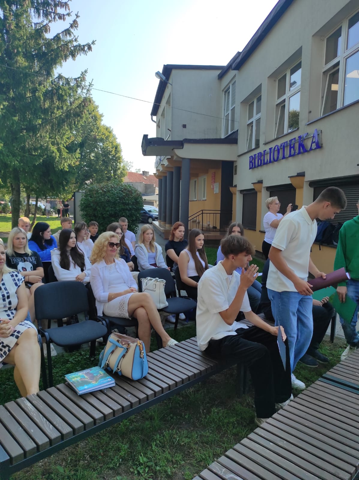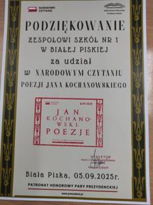Dn. 08.09.2025 r. na scenie letniej M-GOK w Białej Piskiej uczniowie ZS nr 1 włączyli się w coroczną akcję wspólnego czytania wybitnych dzieł literatury polskiej .