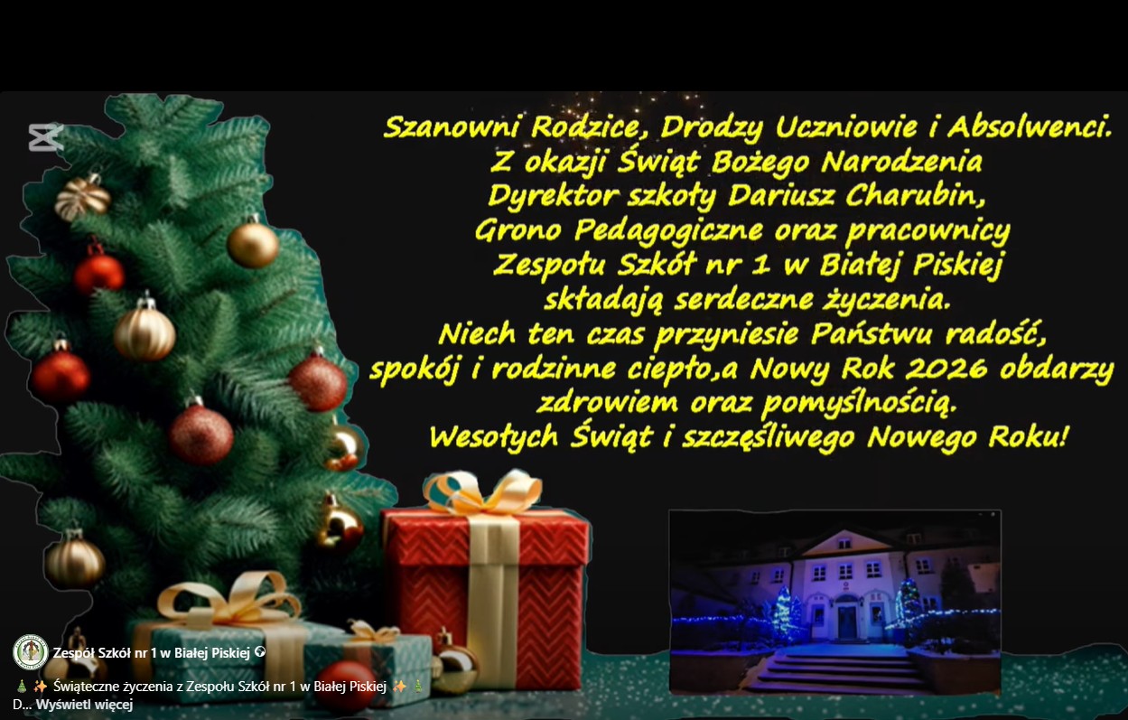 Świąteczne życzenia z Zespołu Szkół nr 1 w Białej Piskiej