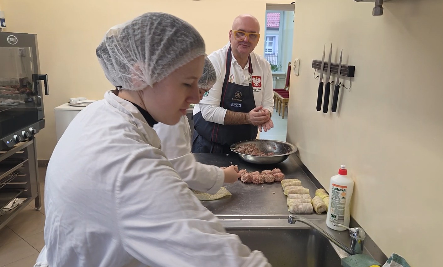 Młodzież z Technikum Żywienia i Usług Gastronomicznych wzięła udział w profesjonalnym kursie gastronomicznym „Kuchnia regionalna”, prowadzonym przez znanego i cenionego szefa kuchni – Krzysztofa Szulborskiego, prezesa Stowarzyszenia Kucharzy Polskich.